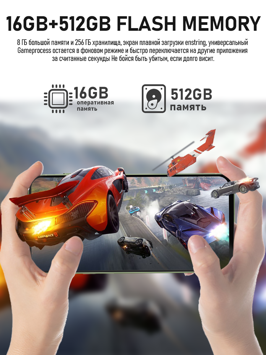 Смартфон W&O «A56″, игровой, 6.7», 5200mAh, 16ГБ/512ГБ, Android 14