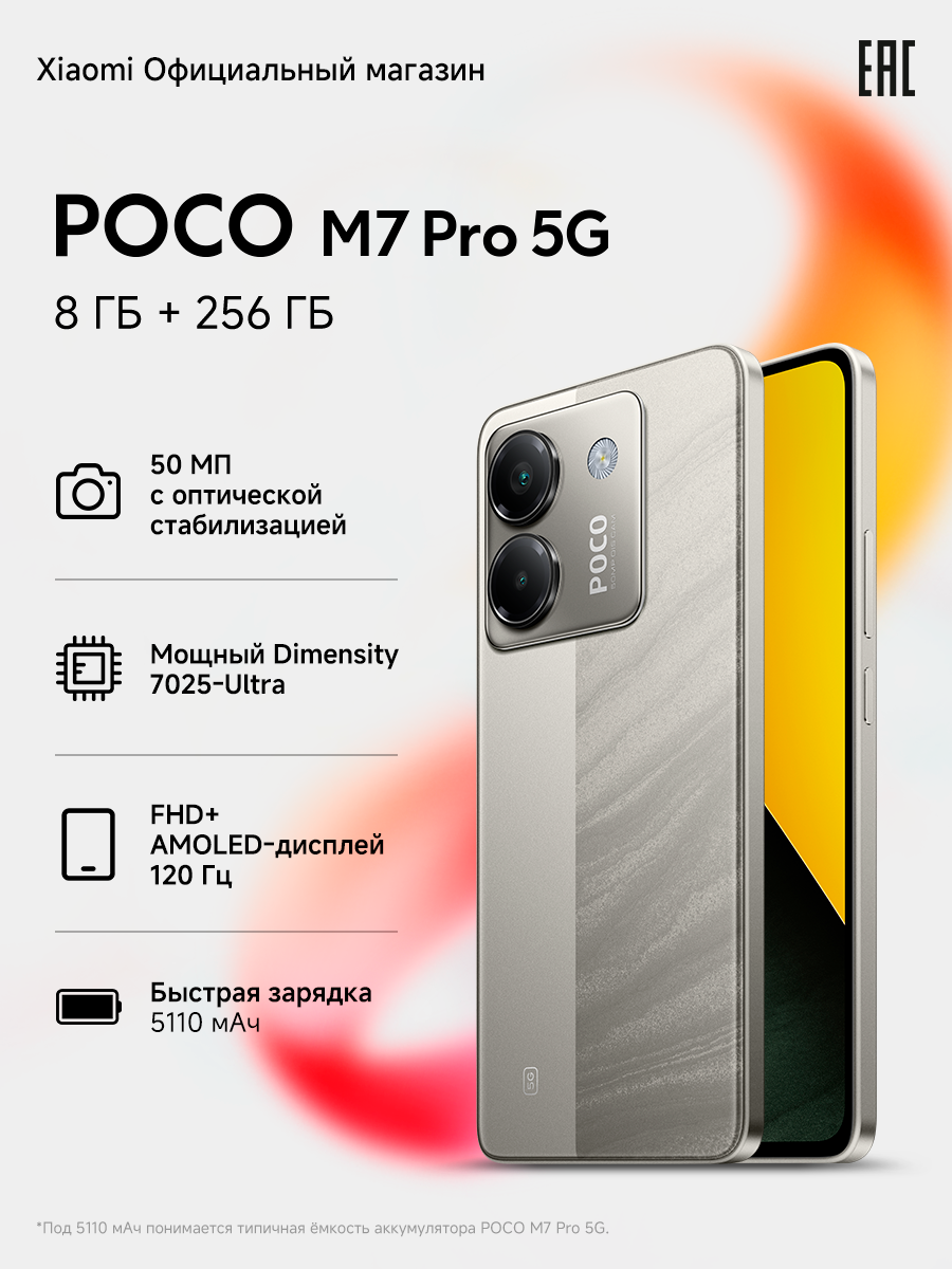 Купить Смартфон POCO M7 Pro 5G 8+256 ГБ /AMOLED 6.67″/Android/Ростест с доставкой по всей России.