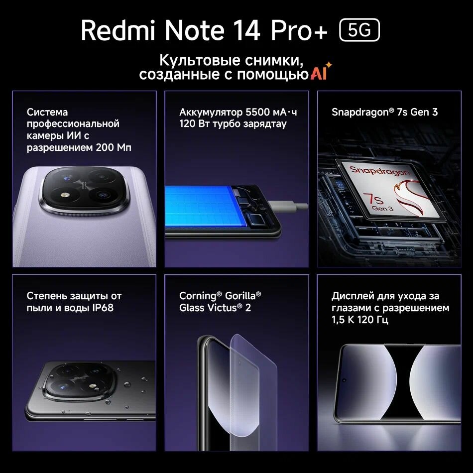 Смартфон Xiaomi Redmi Note 14 Pro+, 5G, 12/256Gb, цвет Frost Blue, (голубой): сравнение цен, характеристики, фото, актуальное наличие и цены.