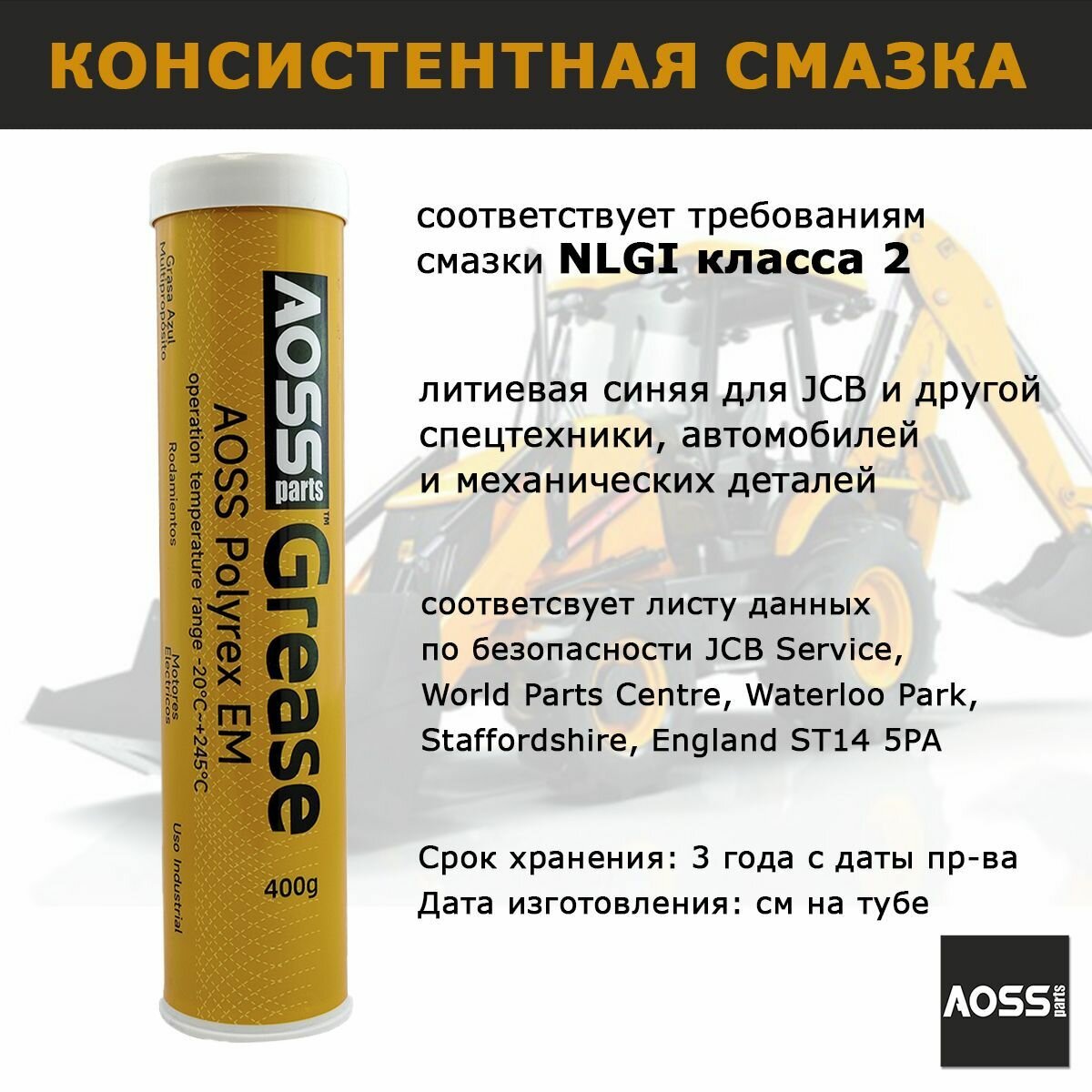 Смазка AOSS Parts "Special HP GREASE" разработана для интенсивной эксплуатации в экстремальных условиях. Идеально подходит для техники JCB и другой спецтехники, обеспечивая надежную работу узлов даже при высоких нагрузках, перепадах температур и воздействии влаги.