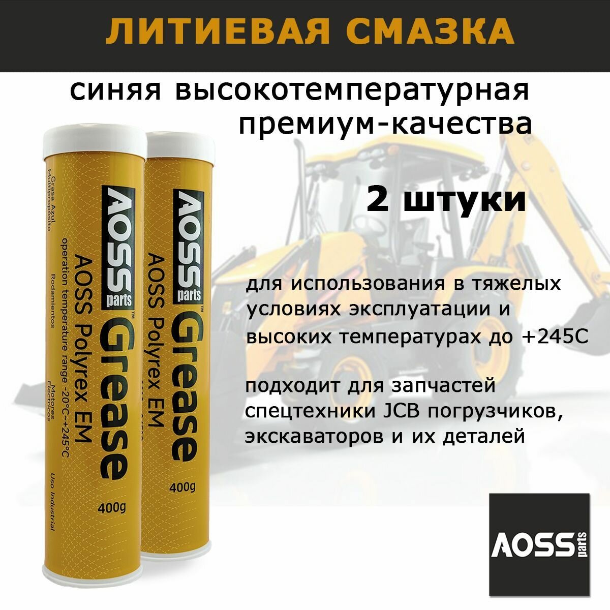 Используйте универсальную синюю смазку AOSS, которая отличается высоким качеством, подходит для всех моделей спецтехники. Смазка для ремонта запчастей экскаваторов. Смазка литиевая без запаха.