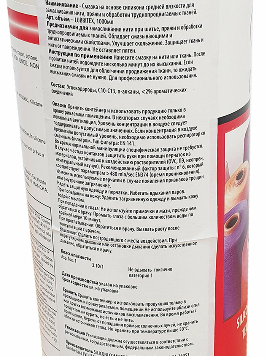Смазка на основе силикона (силиконовое масло) для обработки нитей и тканей. Является улучшенным аналогом широко распространённой смазки ПМС 1000.