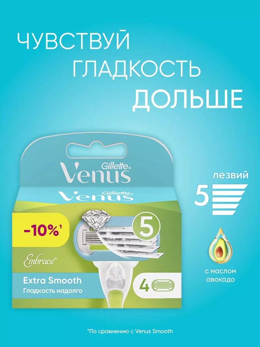 Купить Сменные кассеты для бритья Gillette Venus Embrace Extra Smooth 4 шт с доставкой по всей России. Сменные кассеты для бритья Gillette Venus Embrace Extra Smooth 4 шт: сравнение цен, характеристики, фото, актуальное наличие и цены.