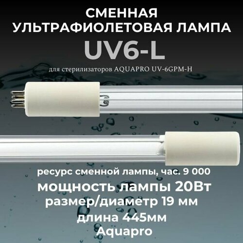 Не откладывайте заботу о чистоте вашей воды! Обновляйте свою систему водоочистки с помощью сменной ультрафиолетовой лампы Aquapro UV6-L и наслаждайтесь чистой и безопасной водой каждый день.