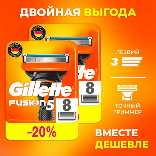 Сменные кассеты для бритья Gillette Fusion5, 8+8 (16 шт) – это высококачественные аксессуары для бритья, которые обеспечивают гладкое и комфортное бритье на долгое время.