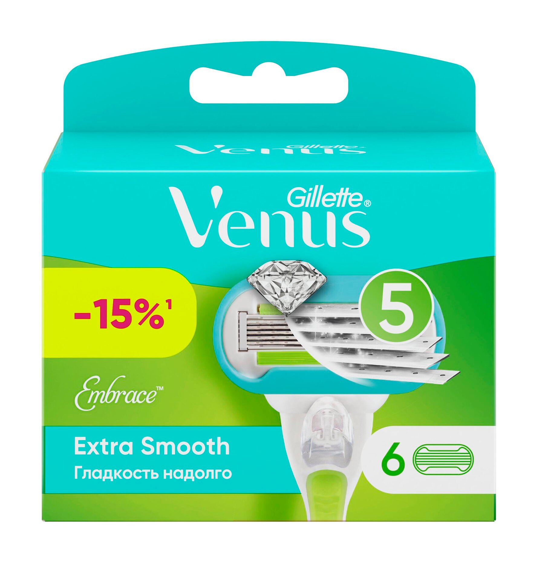 Сменные кассеты для женской бритвы Gillette Venus Embrace, в упаковке 6 шт. Venus Embrace дарит чувство экстрагладкости и комфорта. Gillette Venus Embrace со смазывающей полоской с маслом авокадо обеспечивает идеальную защиту чувствительной кожи. Бритва оснащена 5 острыми лезвиями с алмазоподобным покрытием. Каждое из пяти лезвий мягко вытягивает волосок, срезая его ближе к корню.