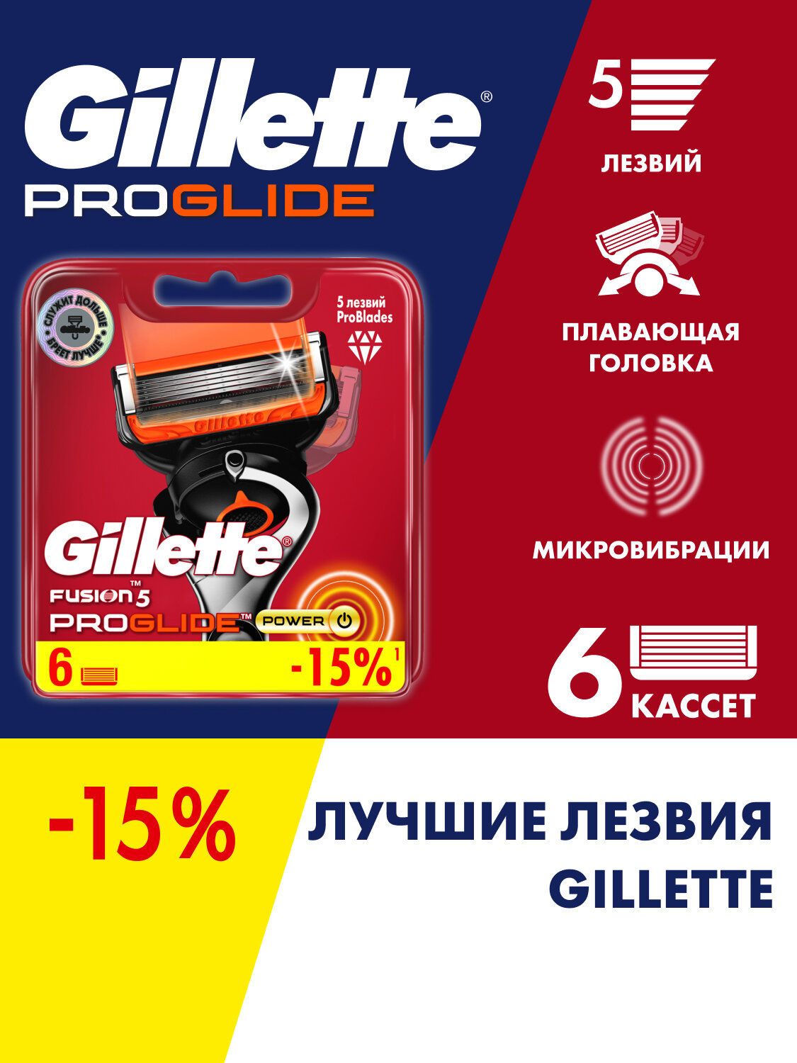 Cменные кассеты Gillette Fusion ProGlide Power для мужской бритвы, 6 шт, с 5 лезвиями, с точным триммером для труднодоступных мест, для гладкого бритья надолго