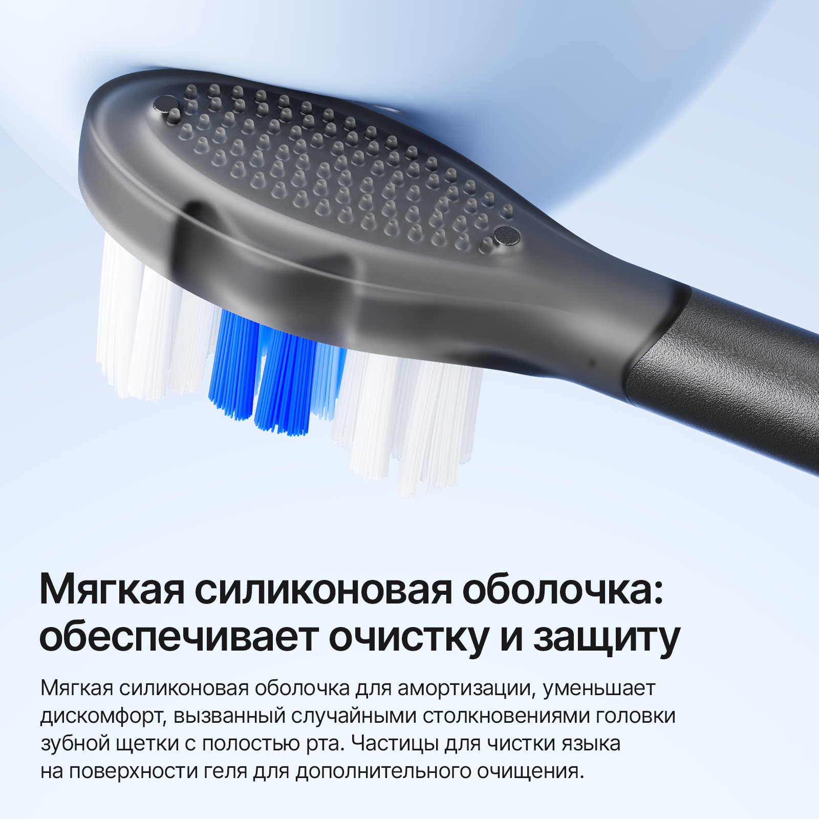 Особенности: 3D двойная дуга насадки зубной щетки; мягкая щетина 0.152 мм; высокая плотность посадки; уф-стерилизация; вакуумная асептическая упаковка.