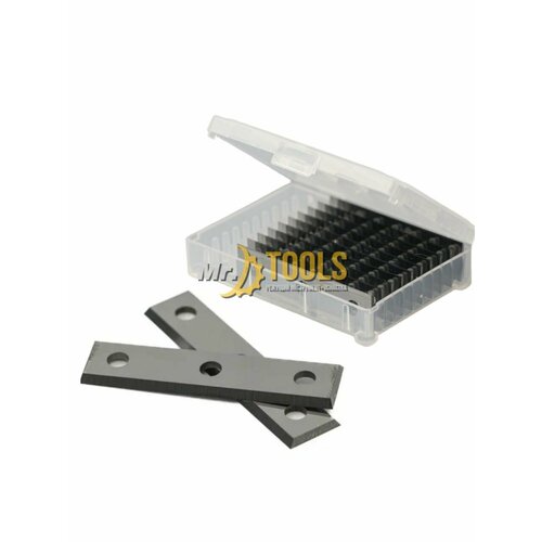 Сменные ножи 50х12х1,7 мм устанавливаются на соответствующие концевые фрезы, имеют 4-х стороннюю заточку и три крепежных отверстия d=4 мм. По мере износа режущей кромки пластина переворачивается.