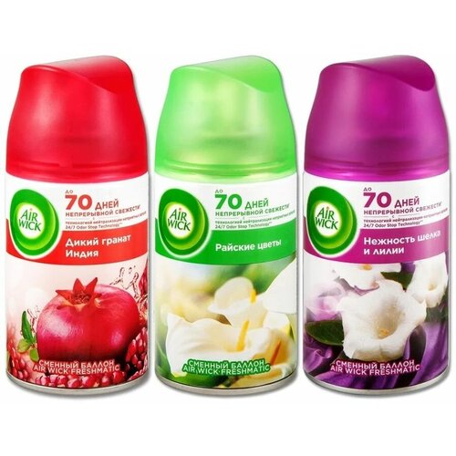 Купить Сменный баллон Air Wick Дикий гранат, Нежные цветы, Нежность шелка и лилии 3шт х 250мл с доставкой по всей России. Сменный баллон Air Wick Дикий гранат, Нежные цветы, Нежность шелка и лилии 3шт х 250мл: сравнение цен, характеристики, фото, актуальное наличие и цены.