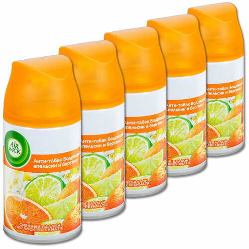 Купить Комплект 5 шт, Сменный баллон 250 мл, AIRWICK «Анти-табак. Апельс/бергамот», для автоматических освежителей, универсальный, 224392 с доставкой по всей России.