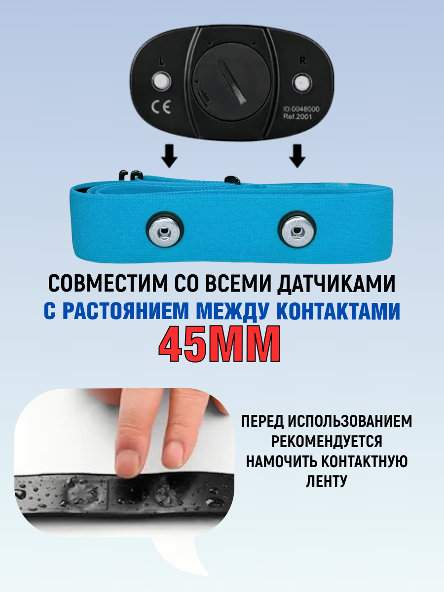 Сменный ремешок с электродами для монитора сердечного ритма, кардиодатчика HRM для Garmin, Polar, Wahoo, 45 мм (Голубой): сравнение цен, характеристики, фото, актуальное наличие и цены.
