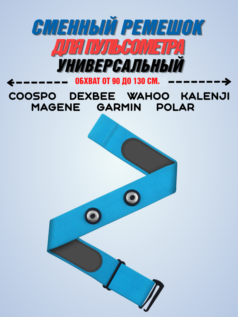 Купить Сменный ремешок с электродами для монитора сердечного ритма, кардиодатчика HRM для Garmin, Polar, Wahoo, 45 мм (Голубой) с доставкой по всей России.