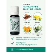 Эфирное масло лимона, корицы, лемонграсса, можжевельника, грейпфрута, апельсина и др. Состав запатентован.