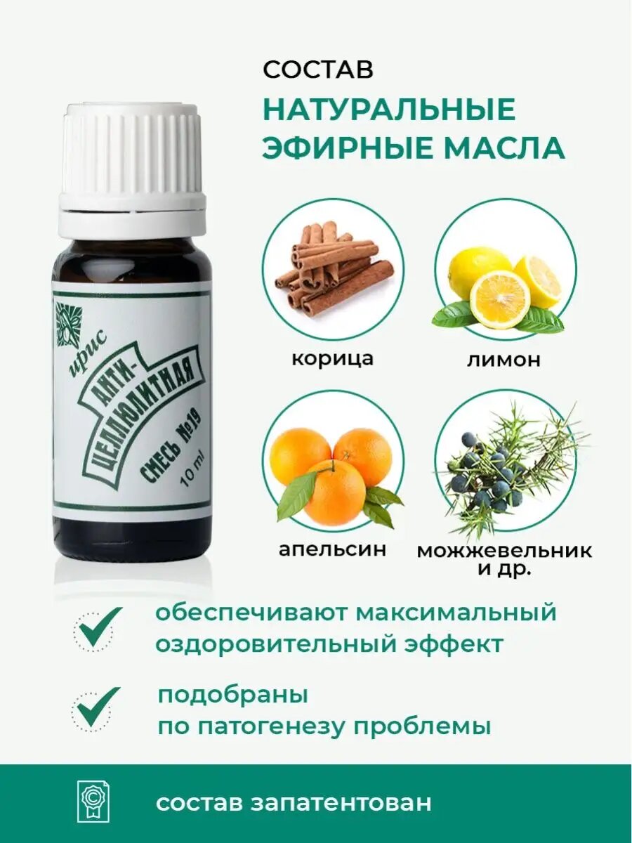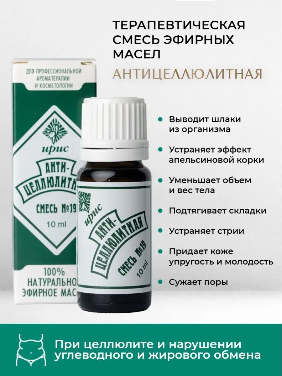 Купить Смесь эфирных масел Ирис «Антицеллюлит», №19, для ванн, массажа, обертываний и пр, 10мл с доставкой по всей России. Смесь эфирных масел Ирис «Антицеллюлит», №19, для ванн, массажа, обертываний и пр, 10мл: сравнение цен, характеристики, фото, актуальное наличие и цены.