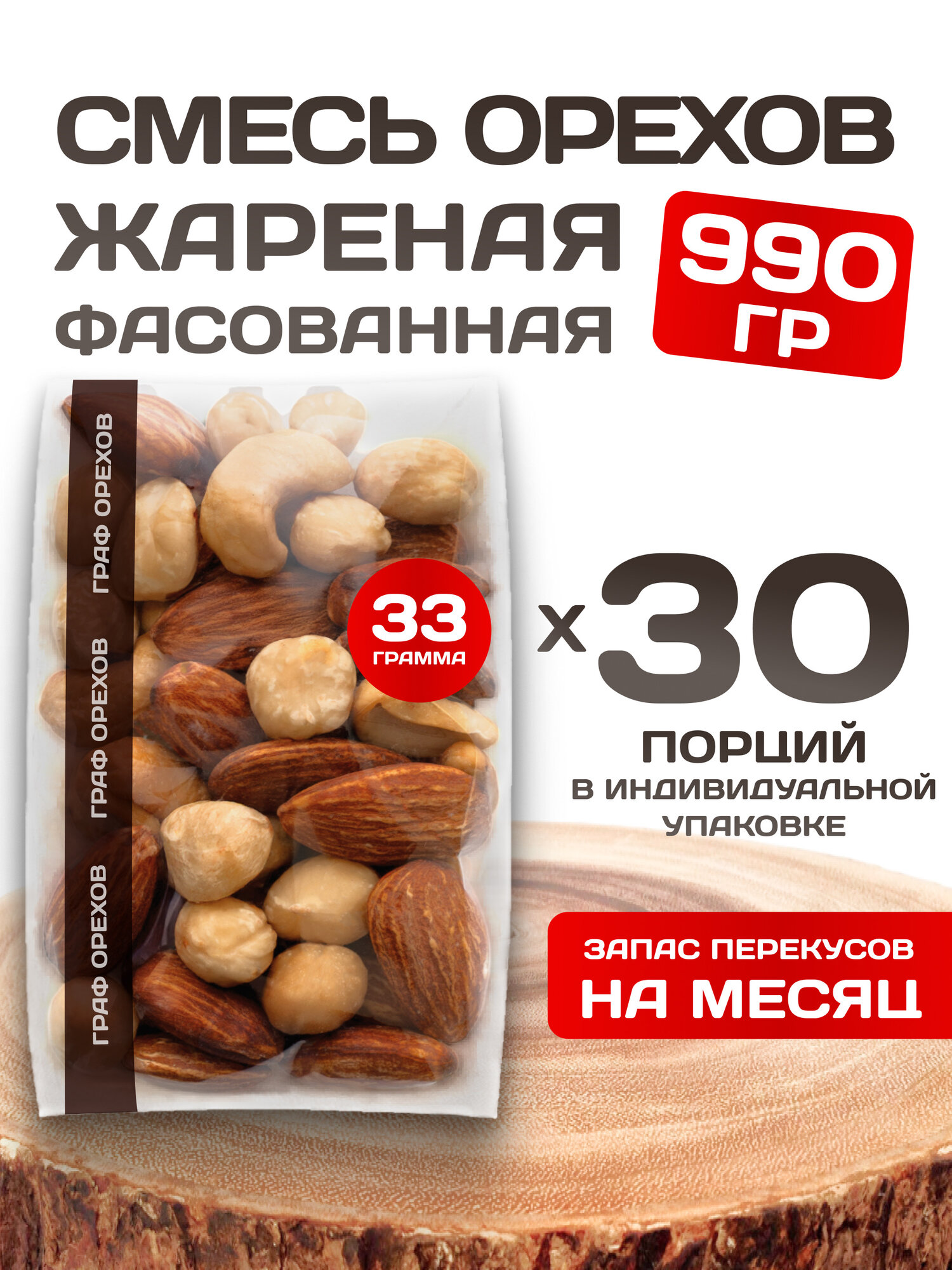Смесь жареных фасованных орехов 990 гр премиум-качества — это идеальное сочетание вкуса, пользы и свежести. В составе только тщательно отобранные ядра кешью, миндаля и фундука, обжаренные до золотистой хрустящей корочки без соли и добавок.