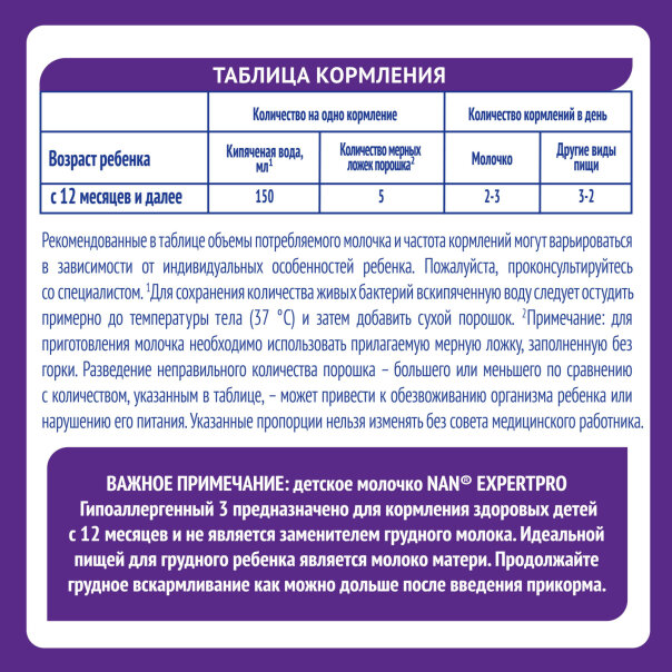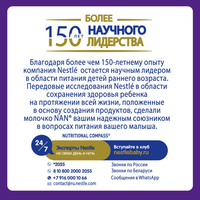 Детские молочные смеси NAN для питания грудных детей следует использовать только по рекомендации специалиста. Мы рекомендуем Вам обратиться к вашему специалисту по питанию в случае возникновения вопросов по грудному вскармливанию или вопросам применения смесей.