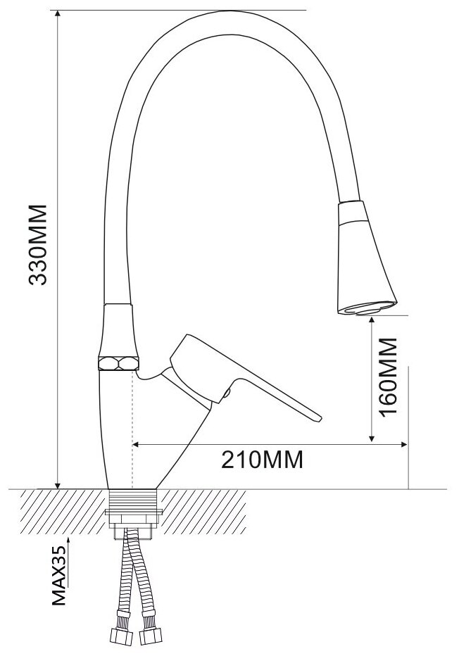 | Тип излива | гибкий, поворотный |