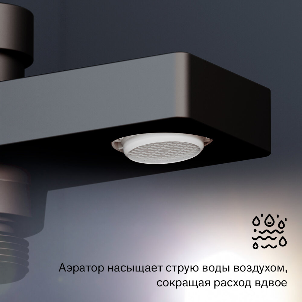 | Особенности | S-образные эксцентрики, аэратор, встроенный фильтр, держатель душевой лейки, поворотный излив, система быстрого монтажа |