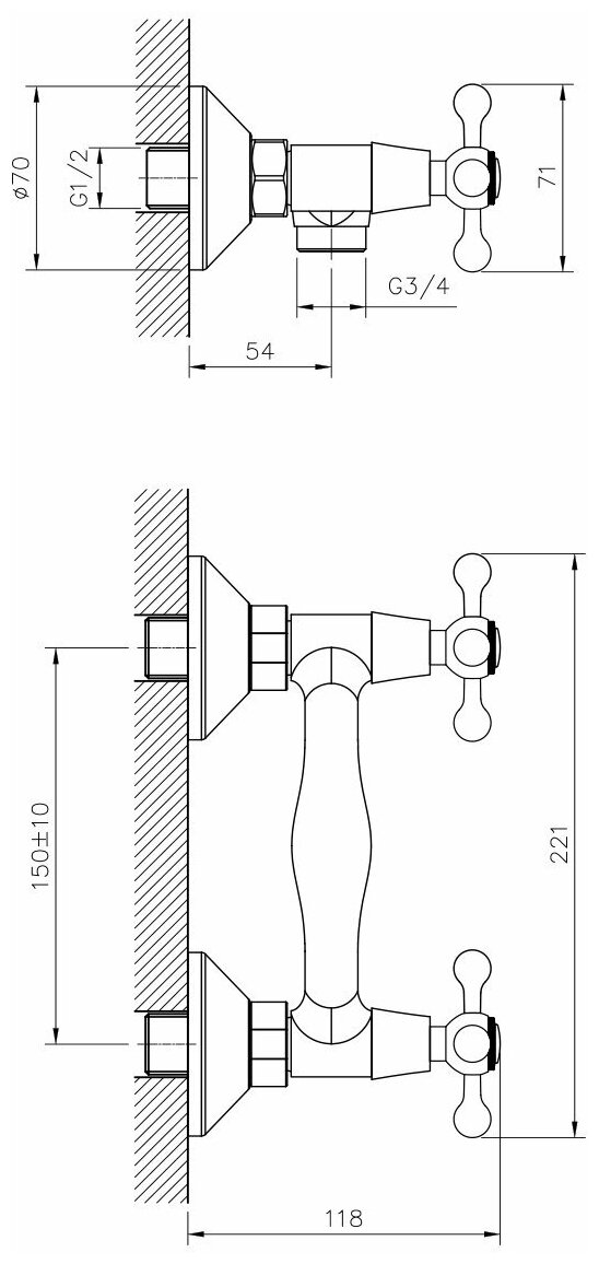 Смеситель DECOROOM DR54055 двуручный для душа