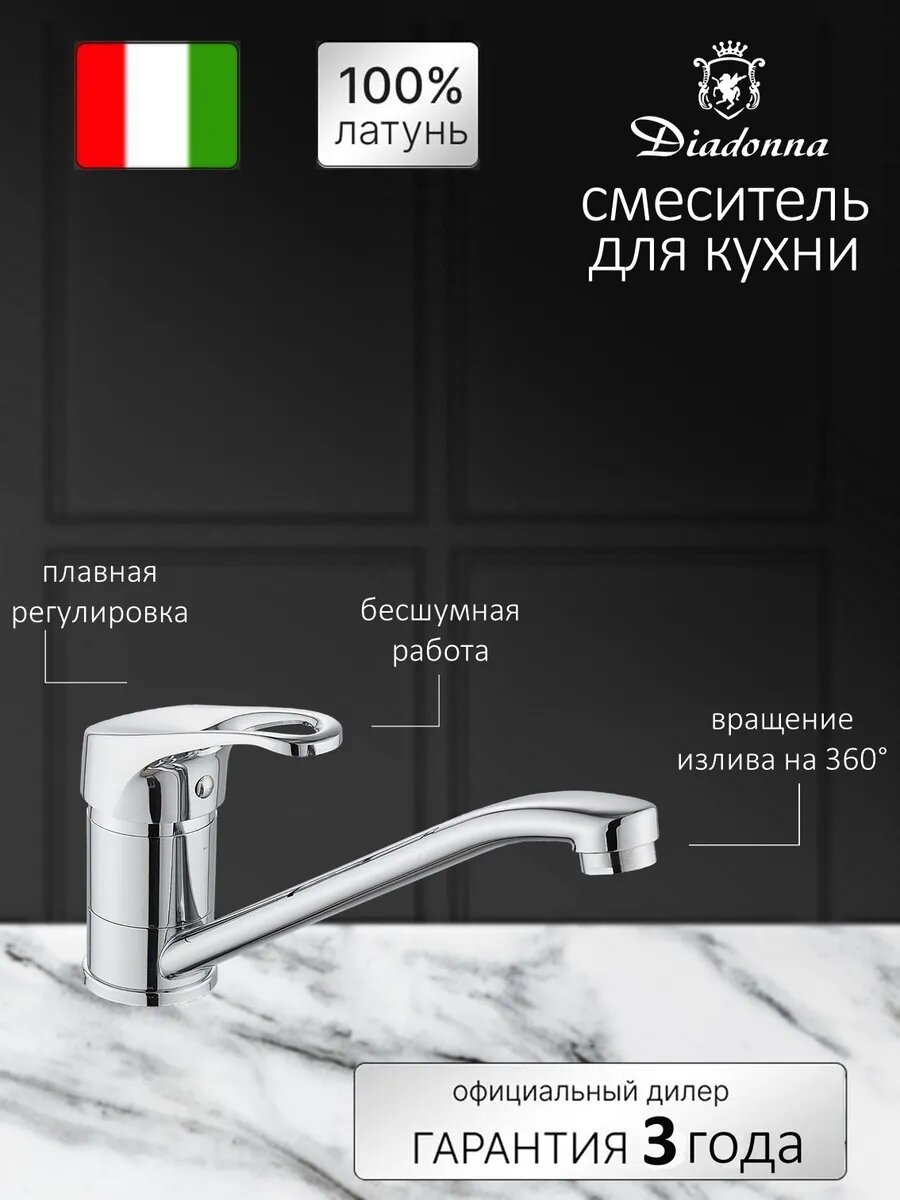 Смеситель Diadonna, для кухни, с длинным изливом, латунь, хром, монтаж горизонтальный: сравнение цен, характеристики, фото, актуальное наличие и цены.