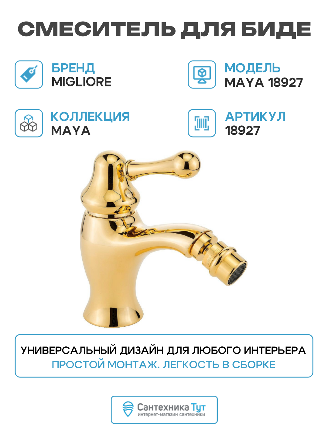 Смеситель для биде Migliore Maya 18927 латунь Италия, стильный дизайн: сравнение цен, характеристики, фото, актуальное наличие и цены.