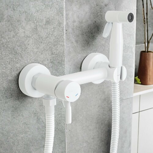 Смеситель для биде с гигиеническим душем, однорычажный, под холодную и горячую воду, белый матовый: сравнение цен, характеристики, фото, актуальное наличие и цены.