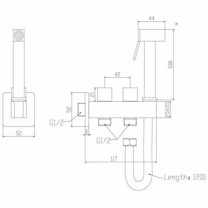 Смеситель скрытого монтажа с гигиеническим душем, металлический шланг в комплекте, латунь, гарантия 10 лет