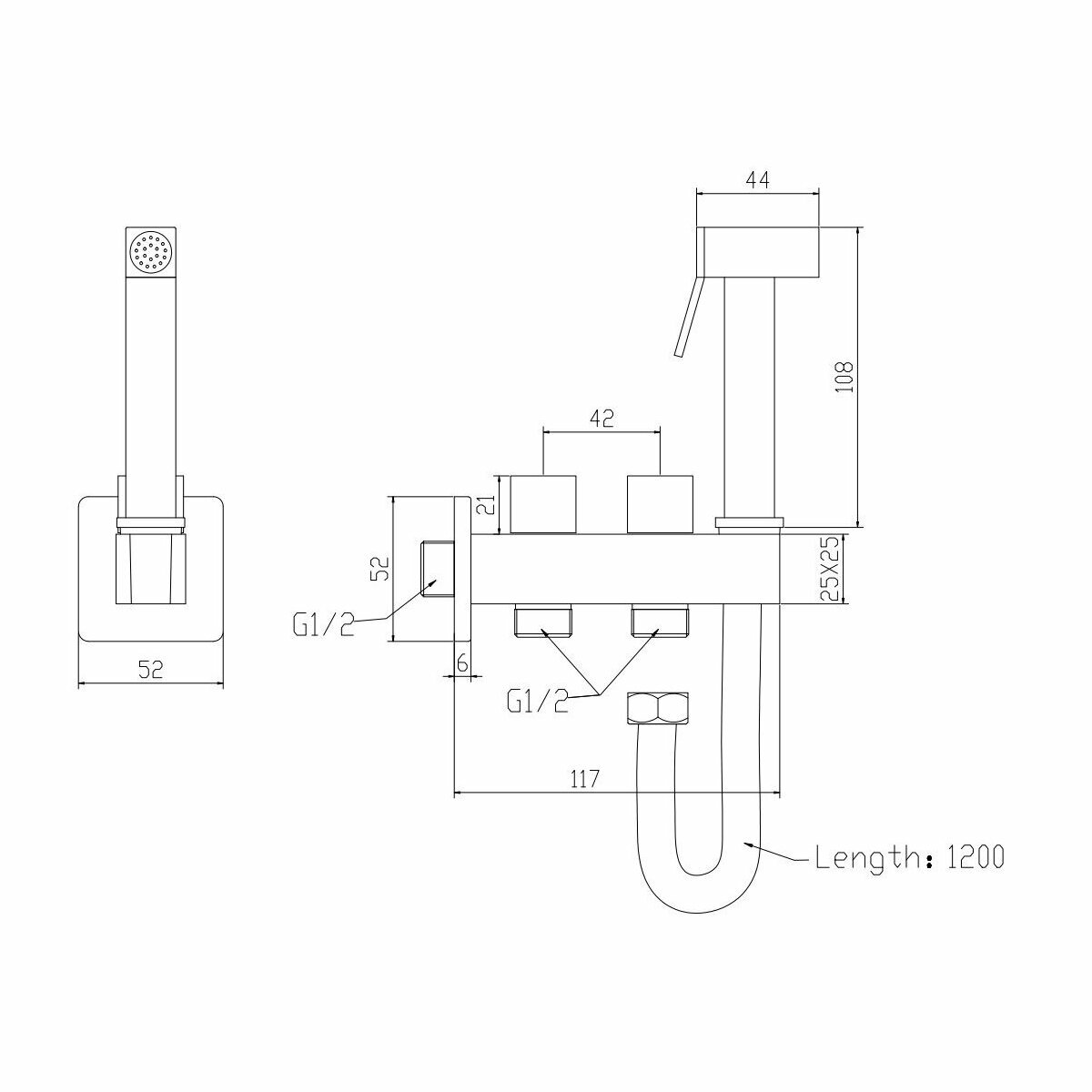 Смеситель скрытого монтажа с гигиеническим душем, металлический шланг в комплекте, латунь, гарантия 10 лет