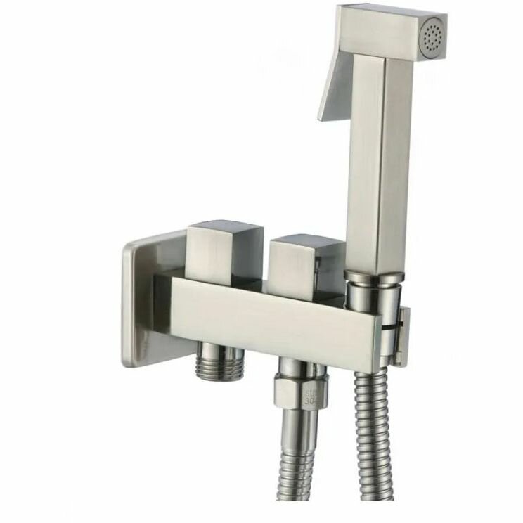 Смеситель скрытого монтажа с гигиеническим душем, металлический шланг в комплекте, латунь, гарантия 10 лет
