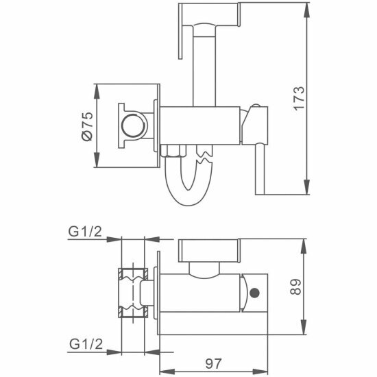 Смеситель Splenka S99.52, встраиваемый, с гигиеническим душем, латунь, хром