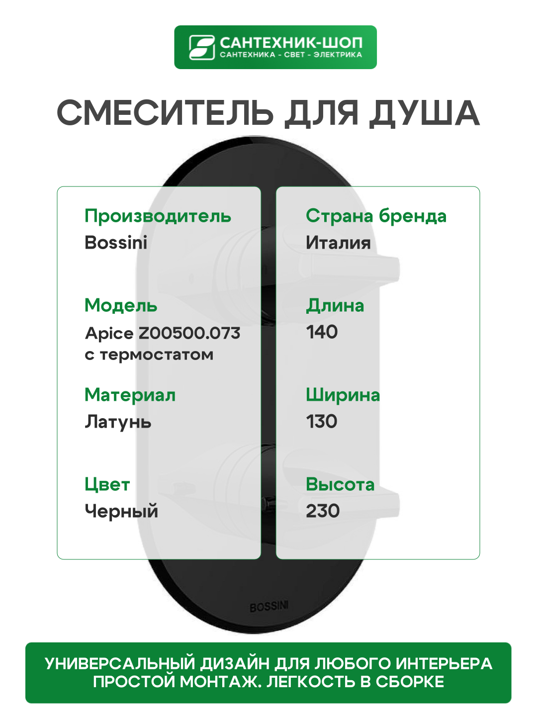 Купить Смеситель для душа Bossini Apice Z00500.073 с термостатом Черный матовый латунь встраиваемый с доставкой по всей России. Смеситель для душа Bossini Apice Z00500.073 с термостатом Черный матовый латунь встраиваемый: сравнение цен, характеристики, фото, актуальное наличие и цены.
