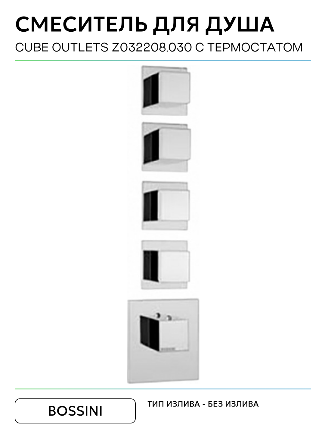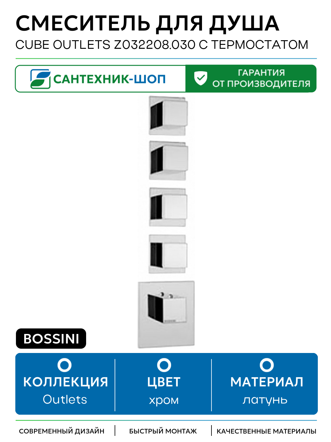 Купить Смеситель для душа Bossini Cube Outlets Z032208.030 с термостатом Хром латунь встраиваемый Италия с доставкой по всей России.
