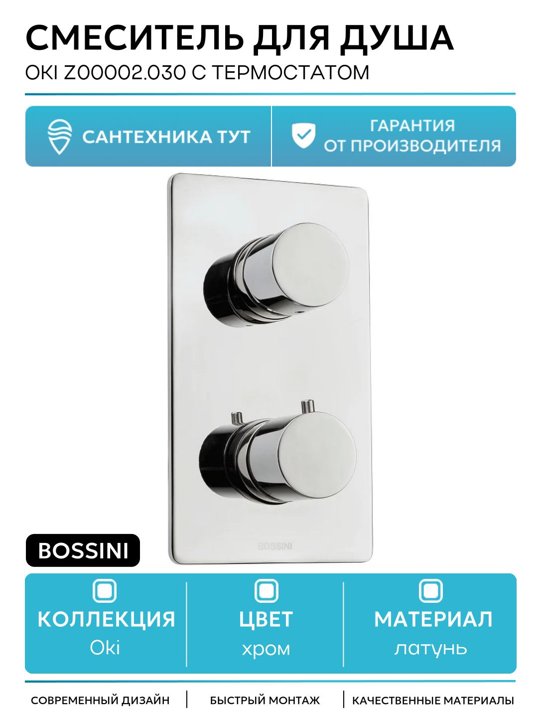 Смеситель для душа Bossini Oki Z00002.030 с термостатом Хром латунь встраиваемый Италия: сравнение цен, характеристики, фото, актуальное наличие и цены.