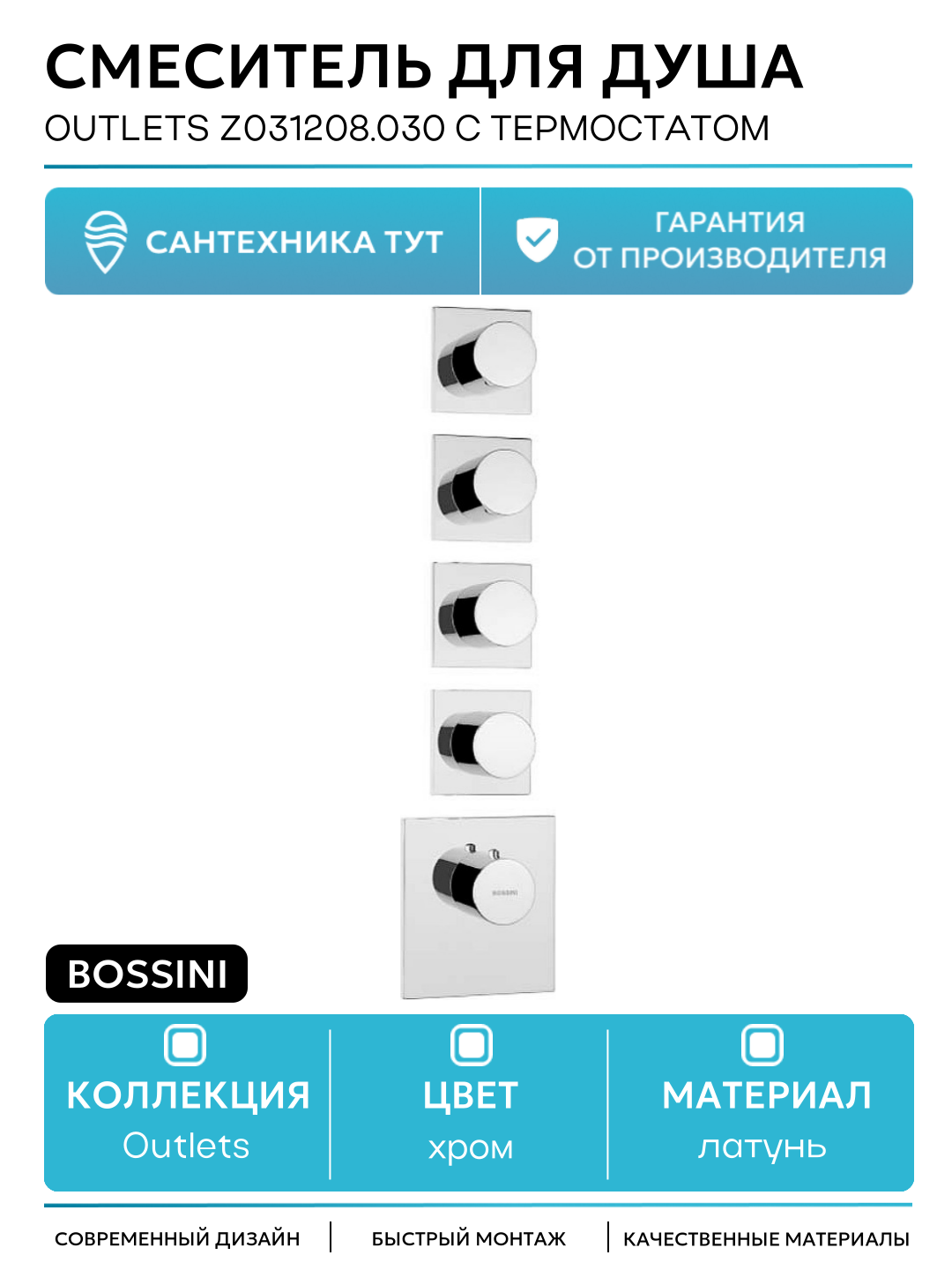 Купить Смеситель для душа Bossini Outlets Z031208.030 с термостатом Хром латунь встраиваемый Италия с доставкой по всей России.