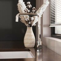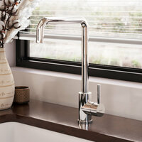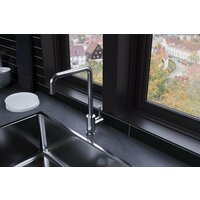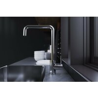 Необычная, строгая форма кухонного смесителя и четкие грани задают динамику интерьеру. Зеркальный блеск достигается за счет покрытия High Gloss.