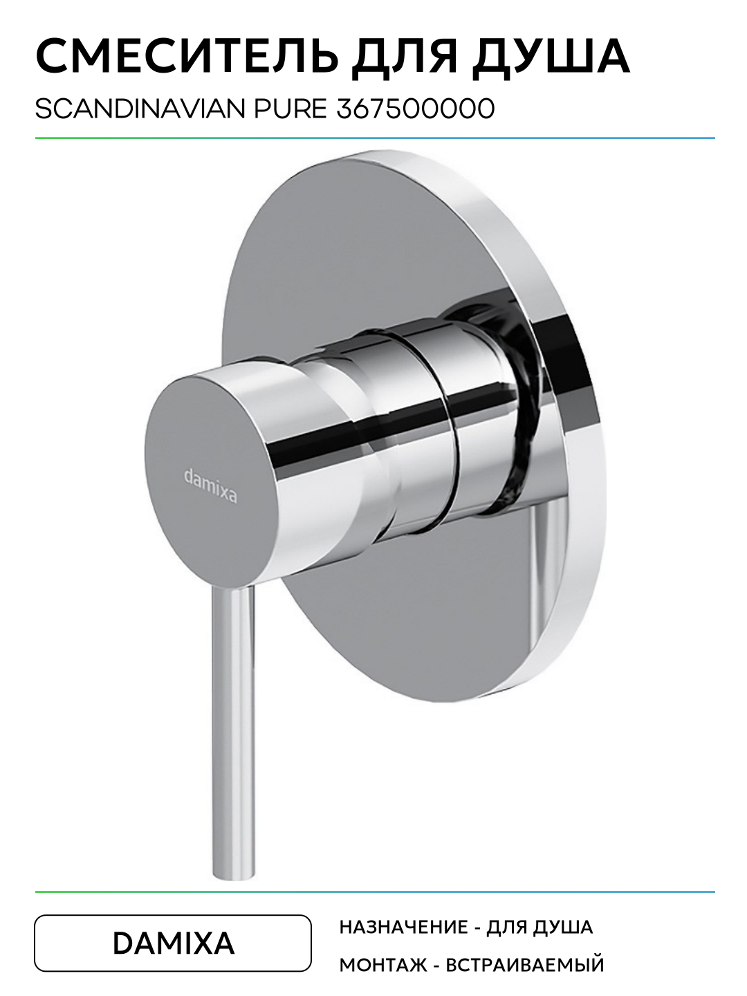 Купить Смеситель для душа Damixa «Scandinavian Pure», встраиваемый, латунь, цвет хром с доставкой по всей России. Смеситель для душа Damixa «Scandinavian Pure», встраиваемый, латунь, цвет хром: сравнение цен, характеристики, фото, актуальное наличие и цены.