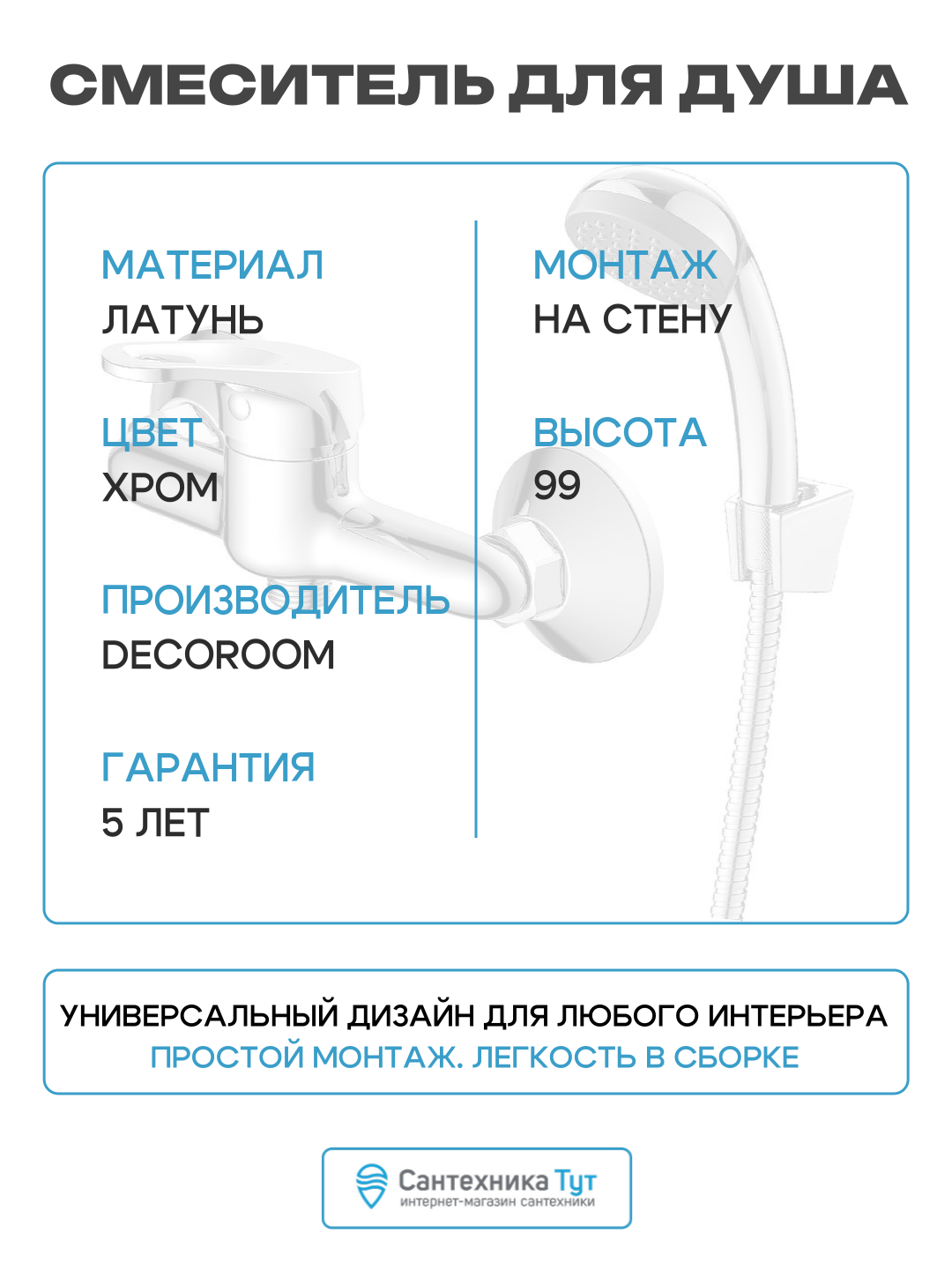 Смеситель для душа Decoroom DR21055 Хром, качество и стильный дизайн: сравнение цен, характеристики, фото, актуальное наличие и цены.