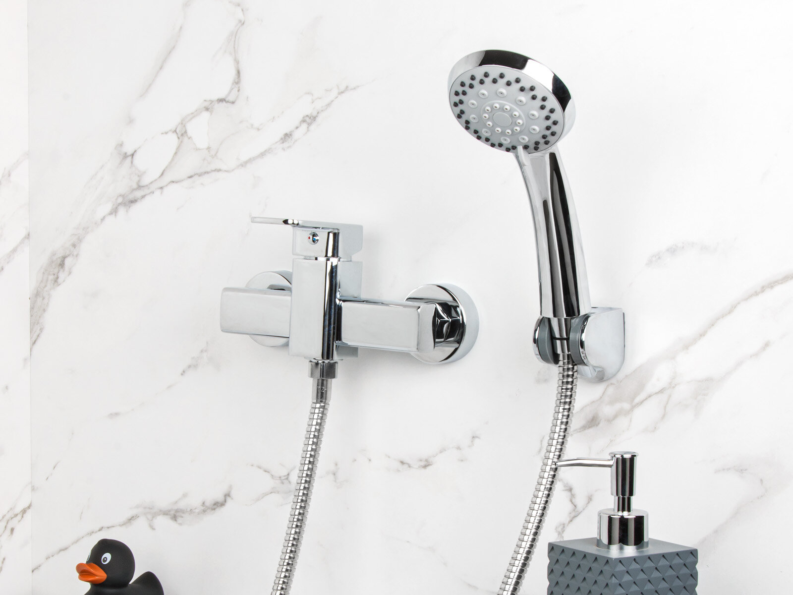 Купить Смеситель для душа ECONOCE серия 590 (EC0593) с душевой лейкой и шлангом, декоративными чашами, без эксцентриков с доставкой по всей России.