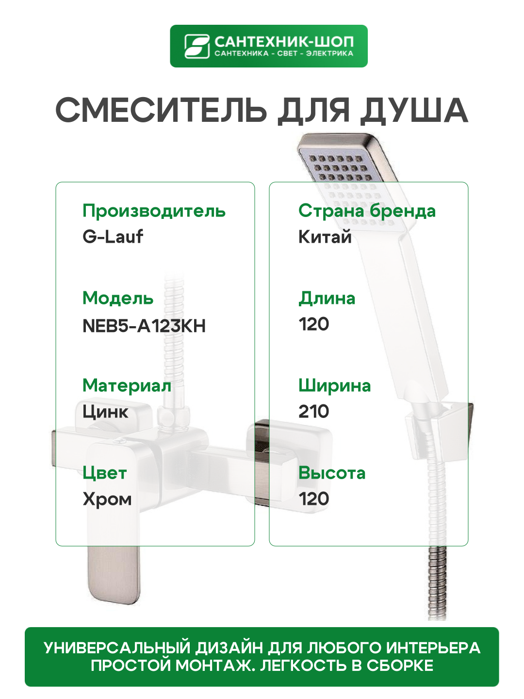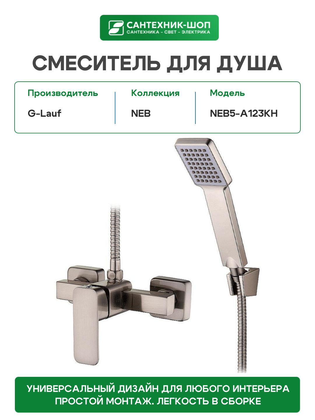 Смеситель для душа G-Lauf NEB5-A123KH Сатин: сравнение цен, характеристики, фото, актуальное наличие и цены.