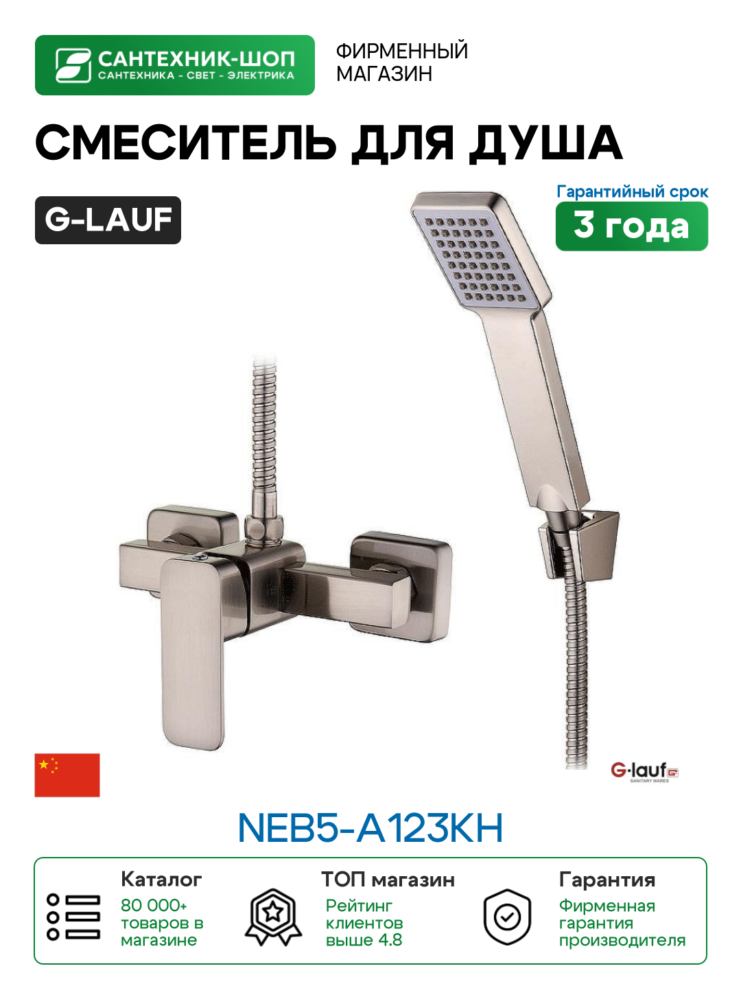 Купить Смеситель для душа G-Lauf NEB5-A123KH Сатин с доставкой по всей России.