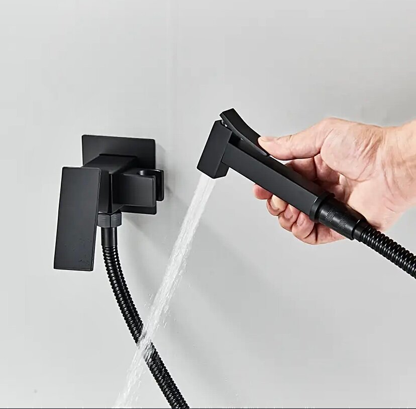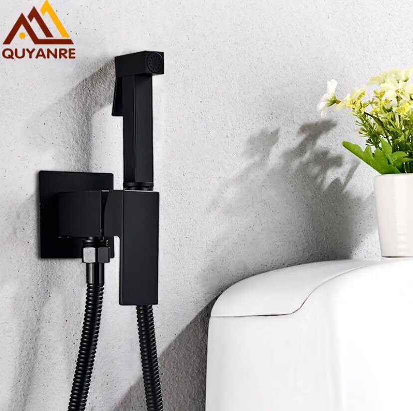 Купить Смеситель для душа и биде с тропическим душем и лейкой Quyanre черный матовый с доставкой по всей России.