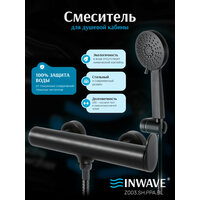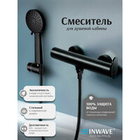 Смеситель для душа и ванны INWAVE, Z003. SH. PPA. BL с душевой лейкой, шлангом и держателем, цвет черный матовый