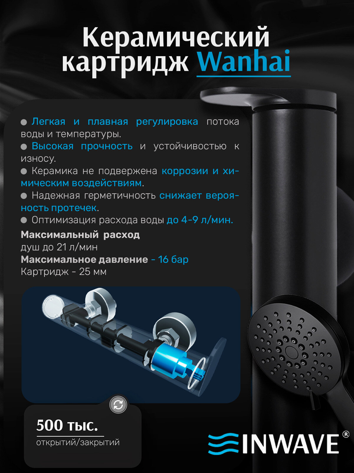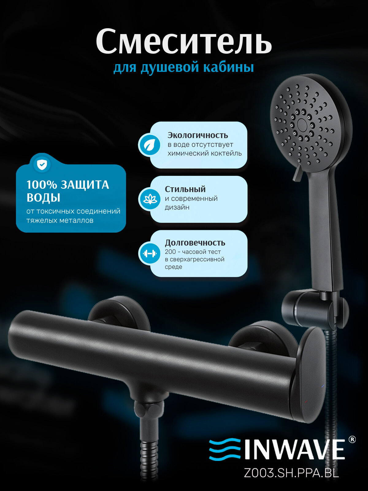 Смеситель для душа и ванны INWAVE, Z003. SH. PPA. BL с душевой лейкой, шлангом и держателем, цвет черный матовый: сравнение цен, характеристики, фото, актуальное наличие и цены.