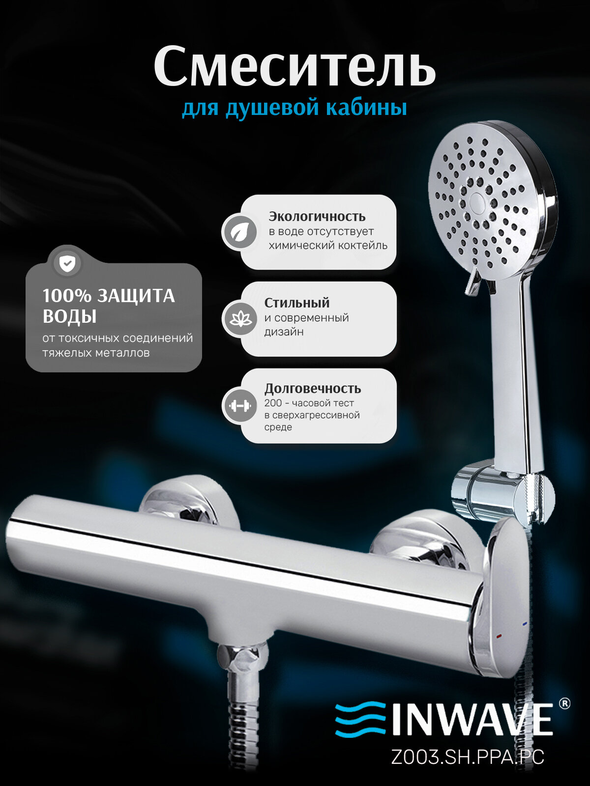 Смеситель для душа и ванны INWAVE, Z003. SH. PPA. PC с душевой лейкой, шлангом и держателем, цвет хром: сравнение цен, характеристики, фото, актуальное наличие и цены.
