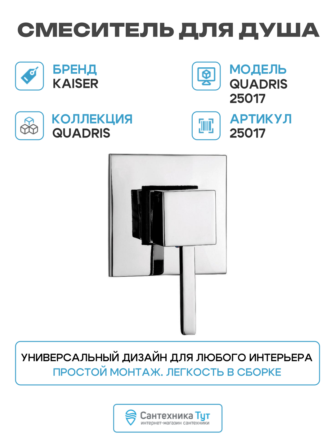 Смеситель для душа Kaiser Quadris 25017 Хром, стильный дизайн: сравнение цен, характеристики, фото, актуальное наличие и цены.