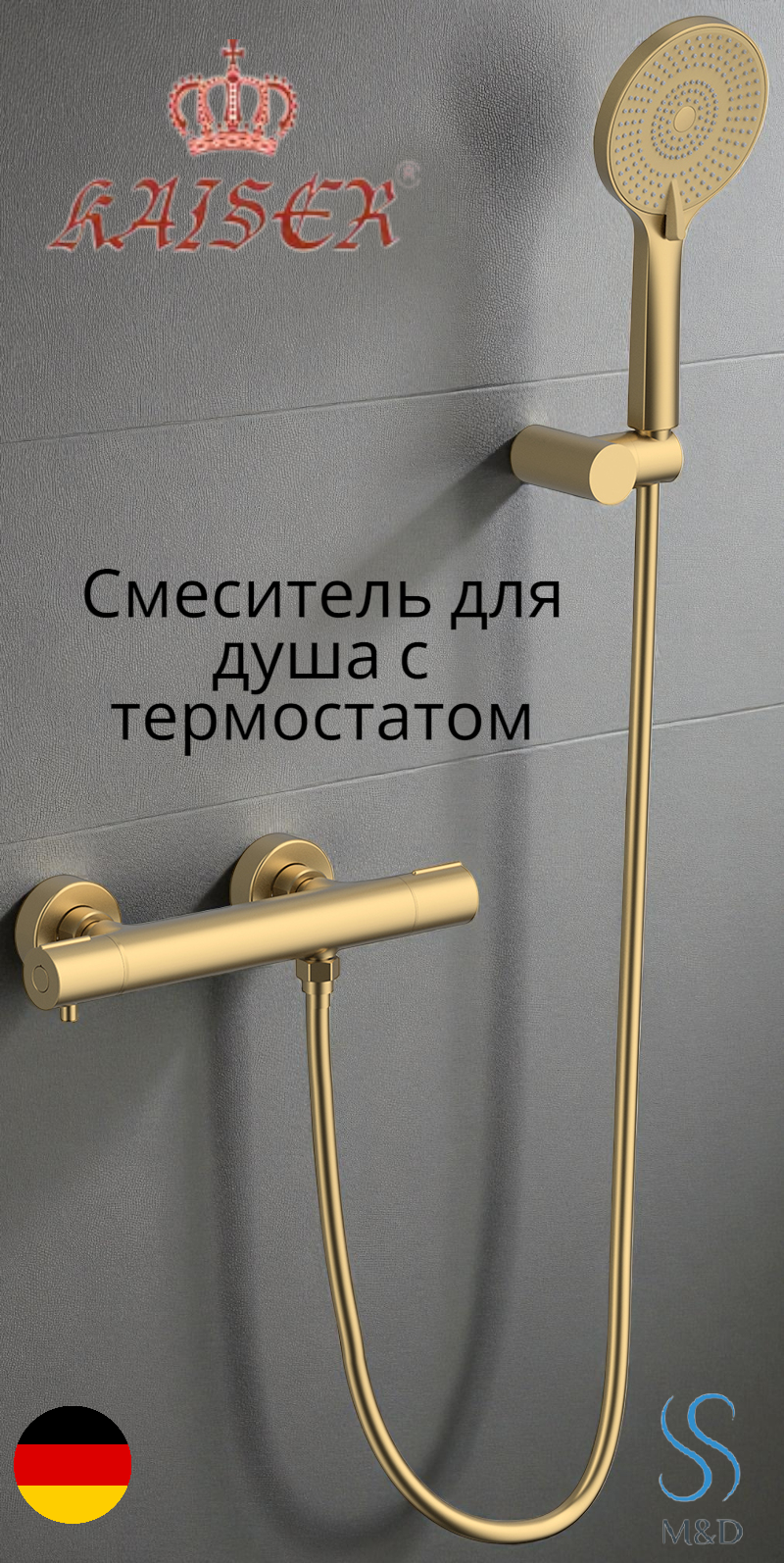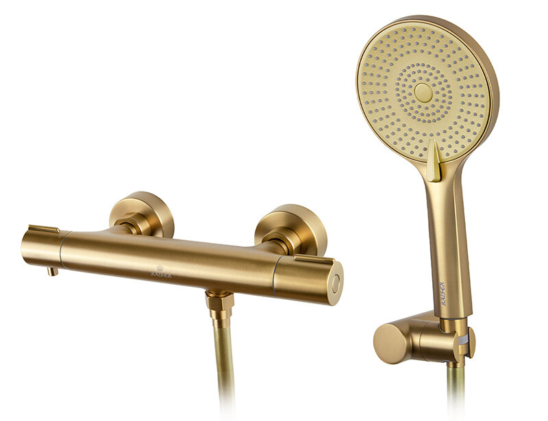 Смеситель для душа Kaiser Serio 05377-3 с термостатом Шлифованное золото: сравнение цен, характеристики, фото, актуальное наличие и цены.