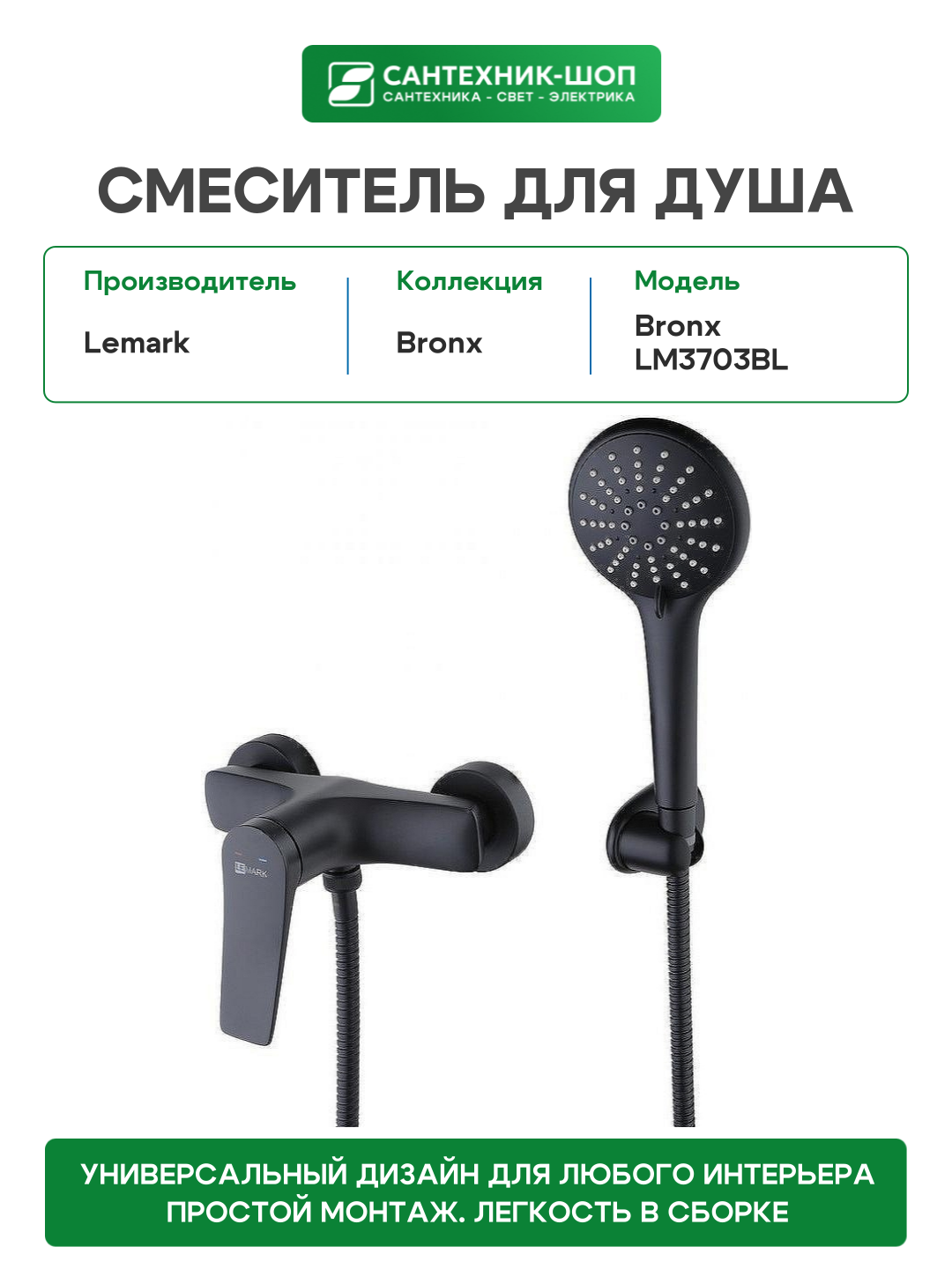 Купить Смеситель для душа Lemark Bronx LM3703BL Черный с доставкой по всей России. Смеситель для душа Lemark Bronx LM3703BL Черный: сравнение цен, характеристики, фото, актуальное наличие и цены.
