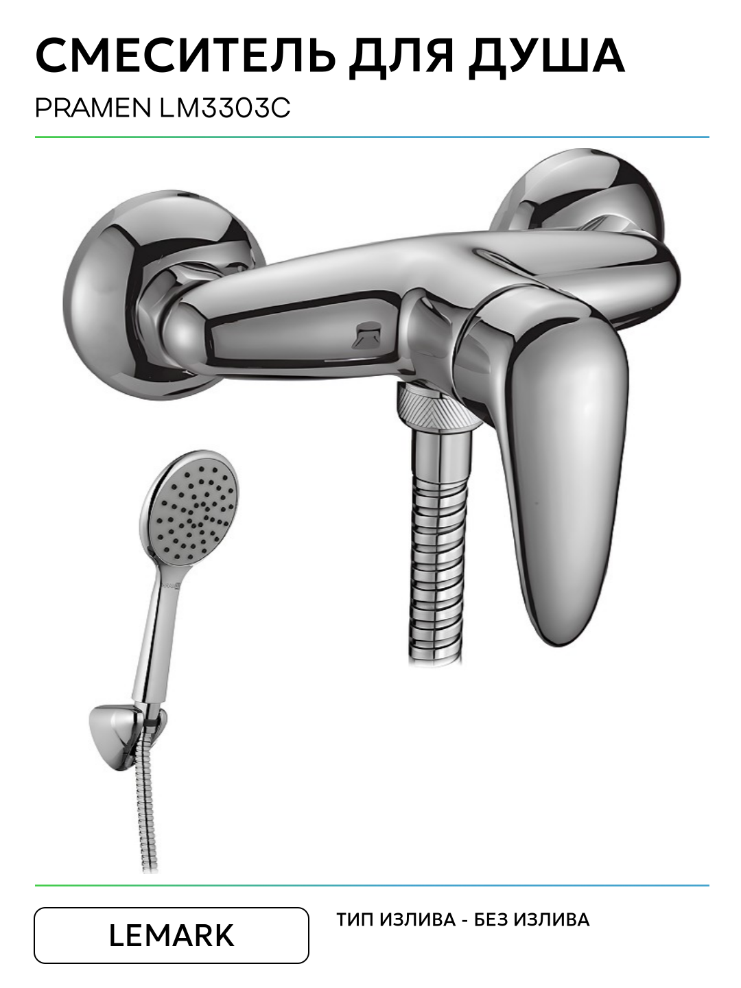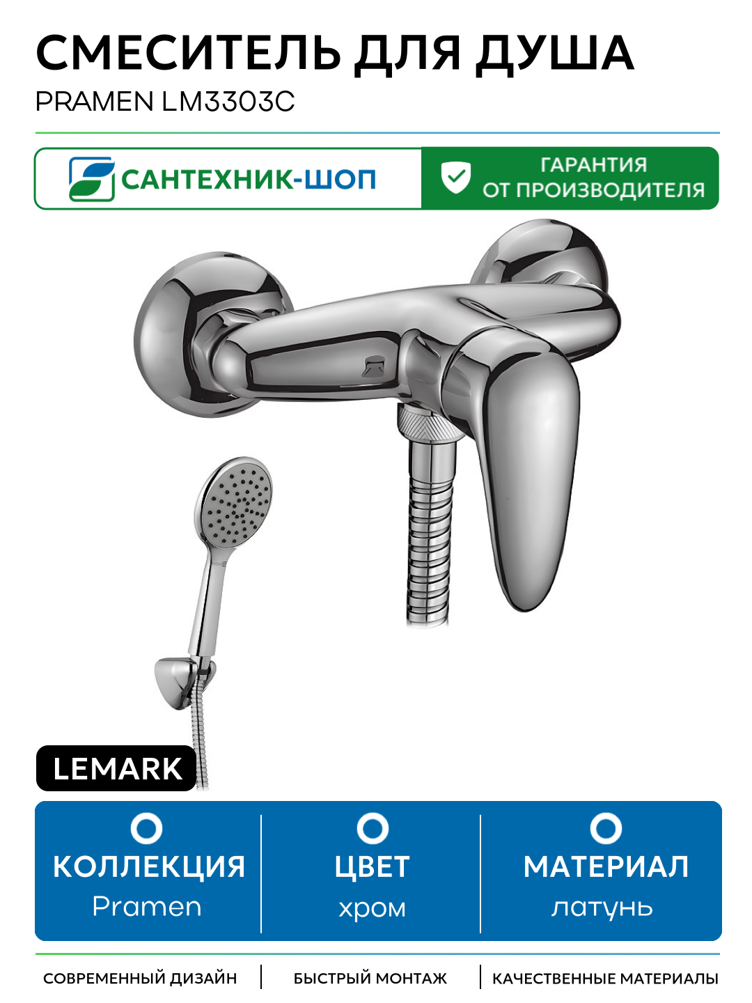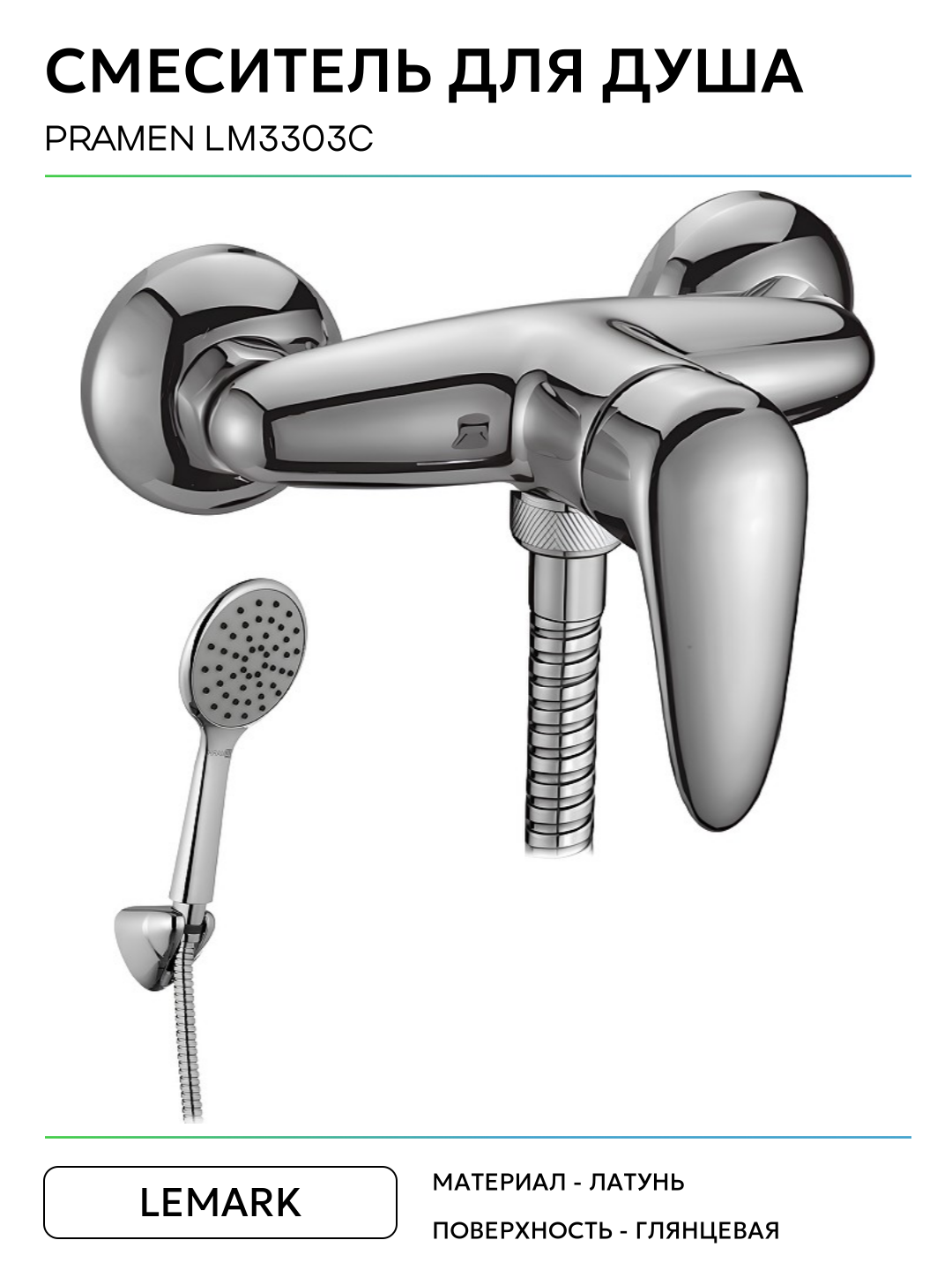 Купить Смеситель для душа Lemark Pramen LM3303C Хром латунь на стену Чехия с доставкой по всей России.