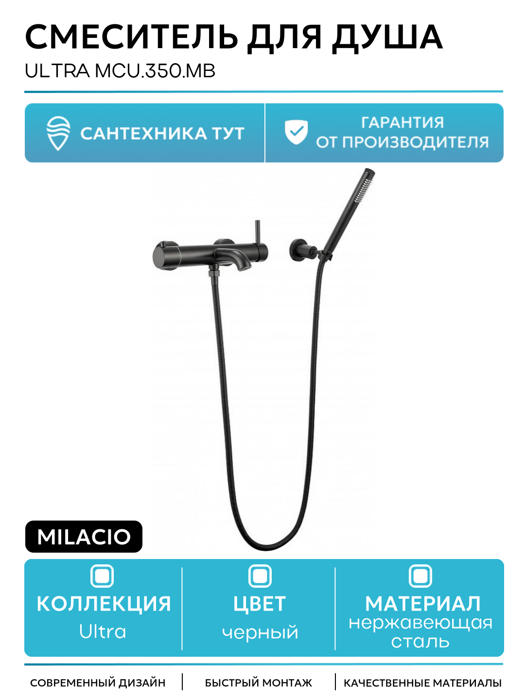 Купить Смеситель для душа Milacio Ultra MCU.350. MB Черный матовый с доставкой по всей России. Смеситель для душа Milacio Ultra MCU.350. MB Черный матовый: сравнение цен, характеристики, фото, актуальное наличие и цены.